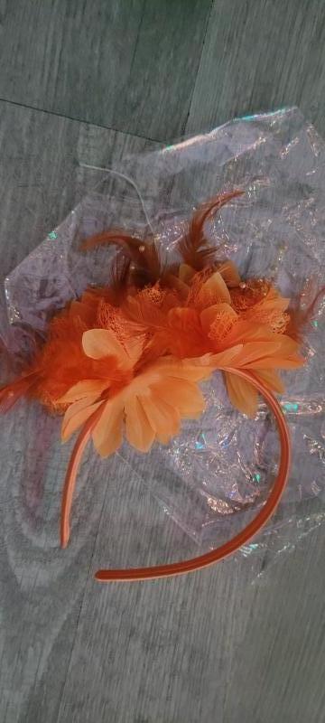 Carnaval Haarband met oranje bloemen veren